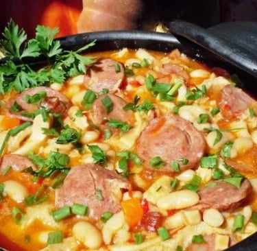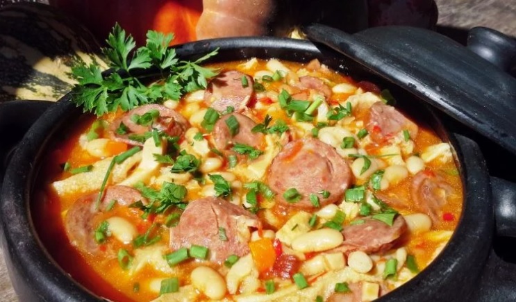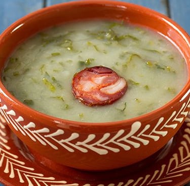 Sopa simples e deliciosa feita com couve-galega, batata e chouriço. Tradicional em noites de São João e festas ao ar livre.